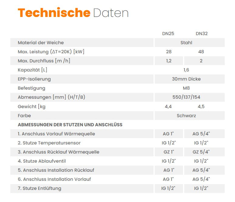 "Hydraulic separator DN25 for separating the heat source circuit and the heating circuit"