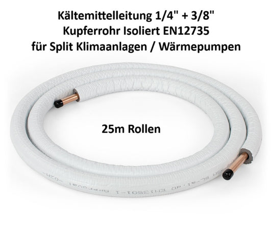 Kältemittelleitung 25m 1/4" + 3/8" Kupferrohr Isoliert EN12735 für Klimaanlage & Wärmepumpe