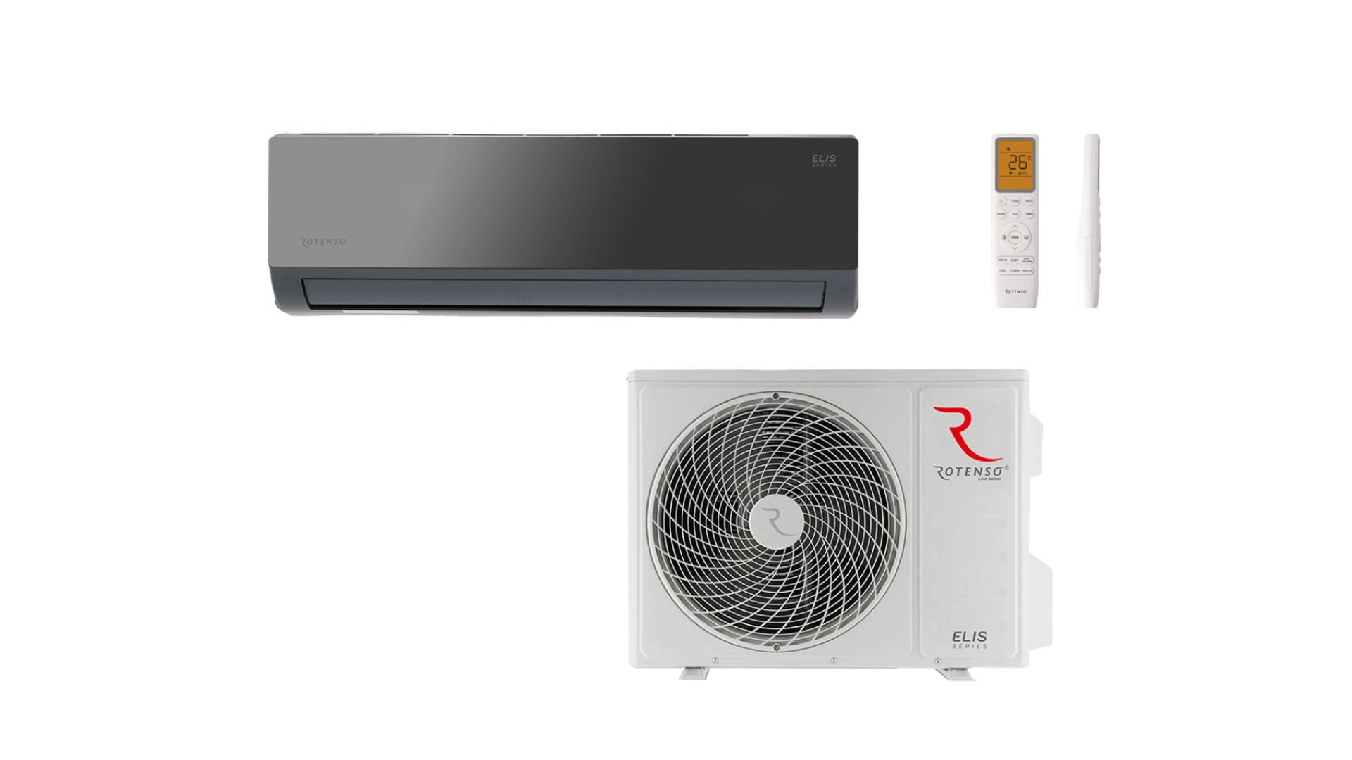 Rotenso Klimaanlage Elis Black 2,6 kW bis 6,8 kW Single-Split Wandgeräte-Set Digital Inverter WiFi A++